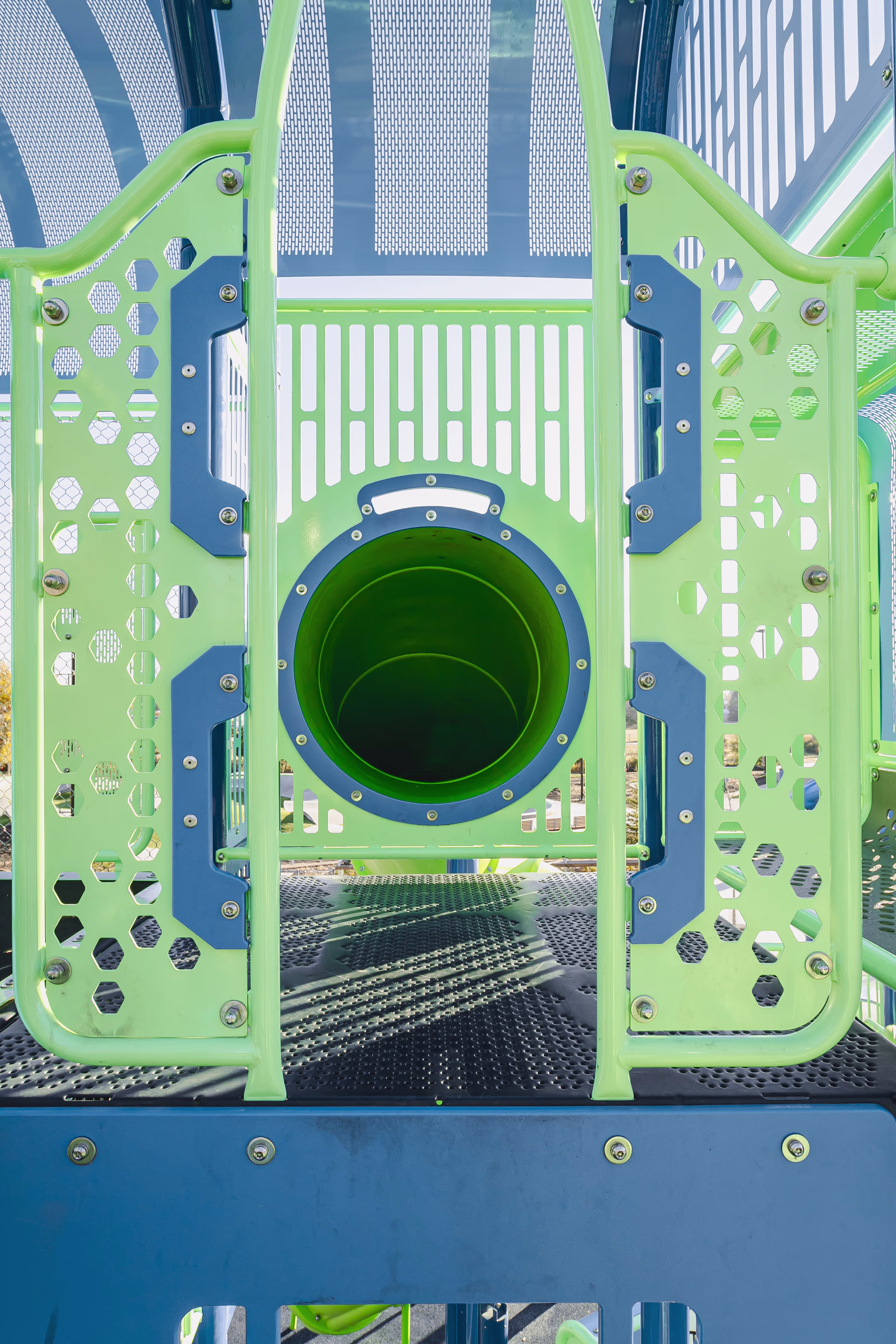 At the heart of the playground is GameTime’s Aventus Tower — the industry’s first accessible playground tower — which raises play to new heights with an integrated transfer platform, SureGrip climbing surfaces, wide decks and sensory-forward gathering spaces that let kids using mobility devices explore upper levels alongside their peers. These inclusive features create more independent play opportunities, better sightlines for caregivers, and a richer, multi-sensory play experience for everyone.