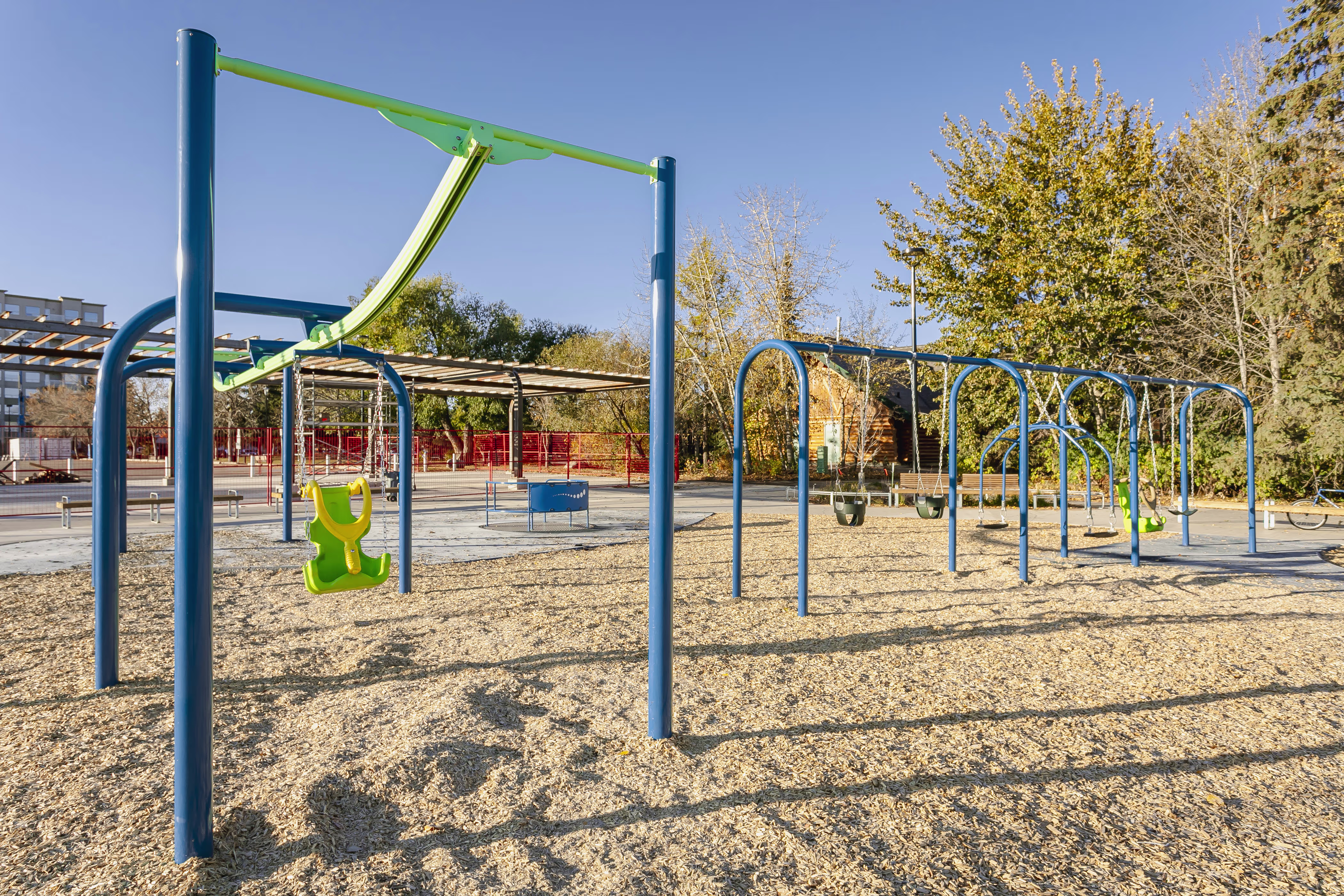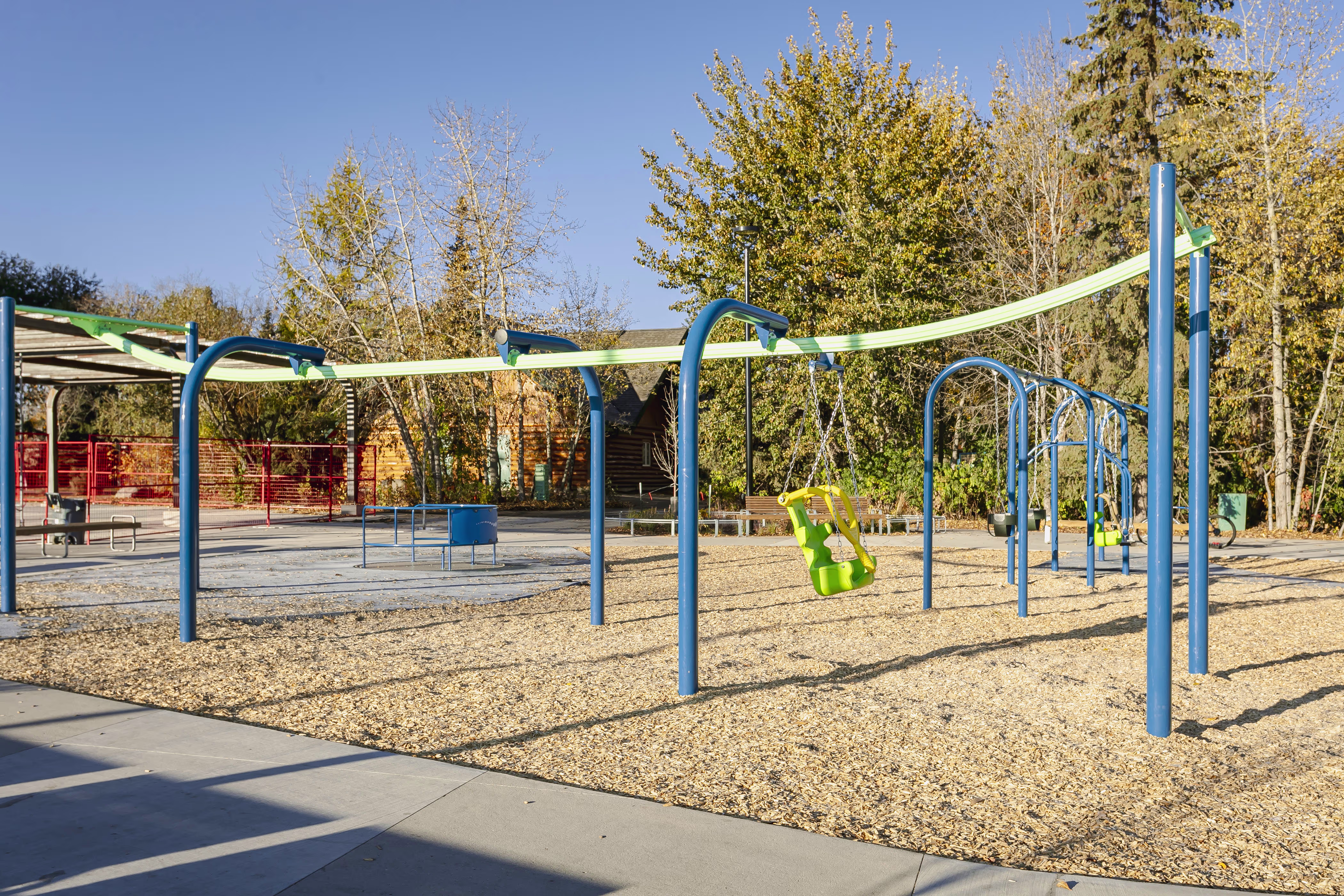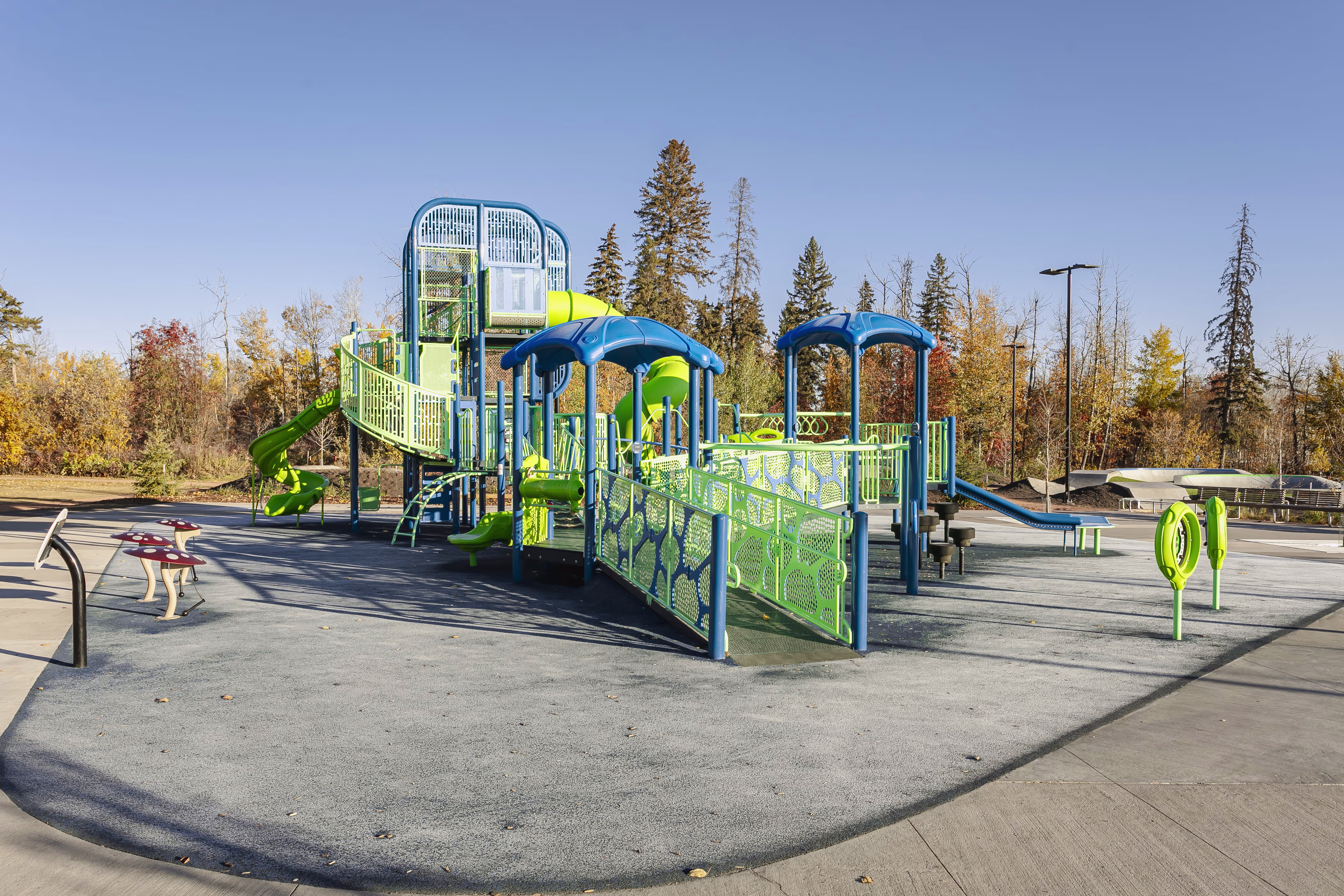Central Park Playground is the centerpiece of Spruce Grove’s Re-imagined Central Park — a multi-year revitalization that adds a skate plaza, pump track, bike skills area and a brand-new inclusive playground designed to welcome children and caregivers of all abilities. The park’s refresh was guided by community input and delivers improved connectivity, enhanced lighting and accessible site circulation so the space works for families year-round.