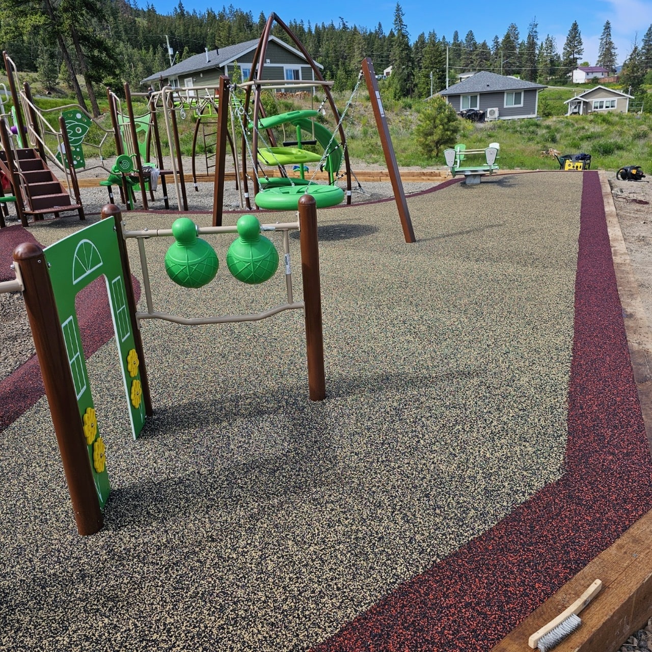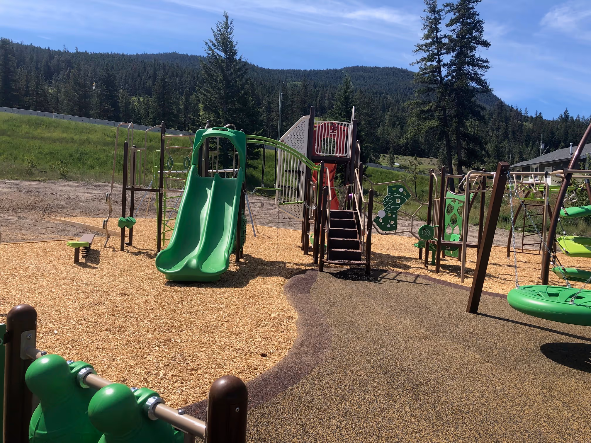 The Cooks Ferry Indian Band Playground at Antko Indian Reserve #21 in British Columbia is a thoughtfully designed outdoor space that encourages movement, sensory play, and social connection. Featuring a durable Engineered Wood Fiber (EWF) surface, this playground supports safe play for children of all ages.